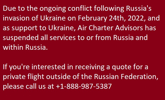 Request a Quote or give us a call at 1-888-987-5387 to speak with one of our Moscow Private Jet Charter agents for your next luxury vacation, business trip, or special event.